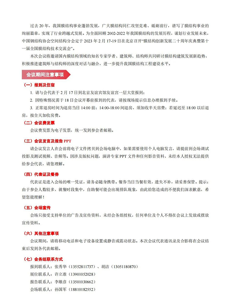 【會議指南】膜結(jié)構(gòu)創(chuàng)新發(fā)展二十周年慶典暨第十一屆全國膜結(jié)構(gòu)技術(shù)交流會