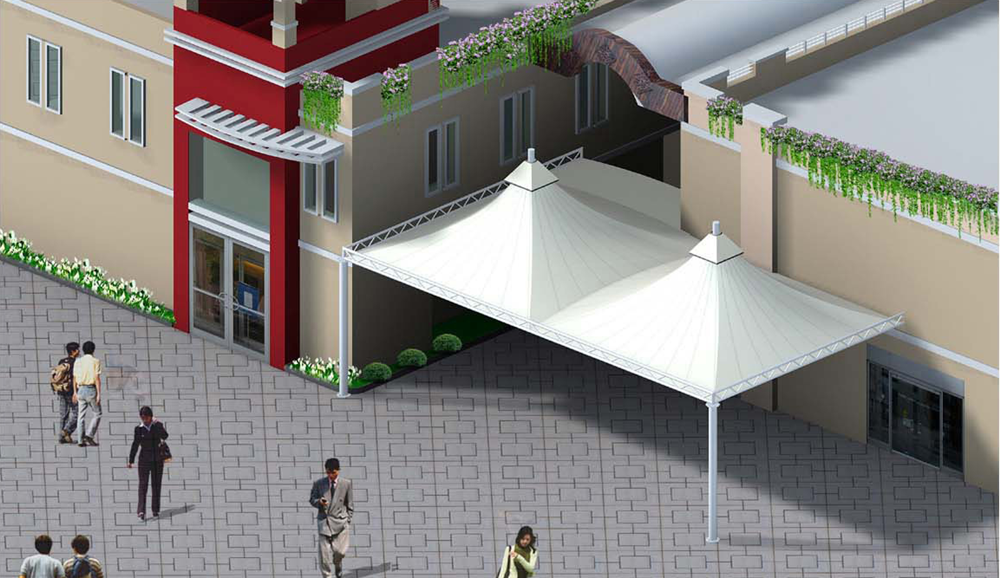 膜結(jié)構(gòu)雨棚主要用途是用于遮雨、遮陽(yáng)作用,裝置了雨棚后使咱們不再受雨水或者太陽(yáng)的直接損害,能夠更好的保護(hù)這塊環(huán)境。