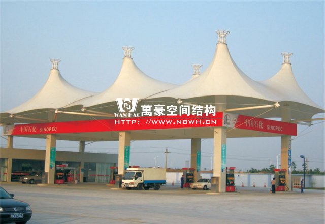 膜結構建筑因其獨特的藝術性,優(yōu)美的造型,濃郁的現(xiàn)代氣息,被廣泛運用到建筑領域的各種設施。加油站膜結構運用在加油站頂蓬上是再合理不過的選擇,因為加油站的頂篷是公路或地區(qū)設置名稱標牌的主要位置,是公路或地區(qū)的重要標志;大跨度的膜結構在這種場合下的運用,能充分體現(xiàn)膜結構的主要特點,并有較好的標識招攬效果。為相關的道路或區(qū)域起到畫龍點睛的作用。