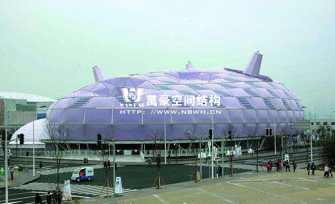 1. 骨架式膜結(jié)構(gòu)體育館:此類膜結(jié)構(gòu)是固定在精致鋼材、空間桁架或其他堅固的構(gòu)架上,稱之為骨架式膜結(jié)構(gòu)體育館。