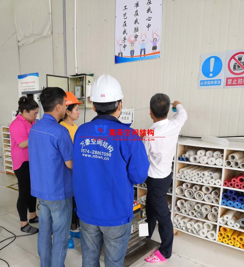 2019年6月2日,萬(wàn)豪空間結(jié)構(gòu)總經(jīng)理張總在萬(wàn)豪工廠對(duì)車間生產(chǎn)管理進(jìn)行了視察指導(dǎo)工作。