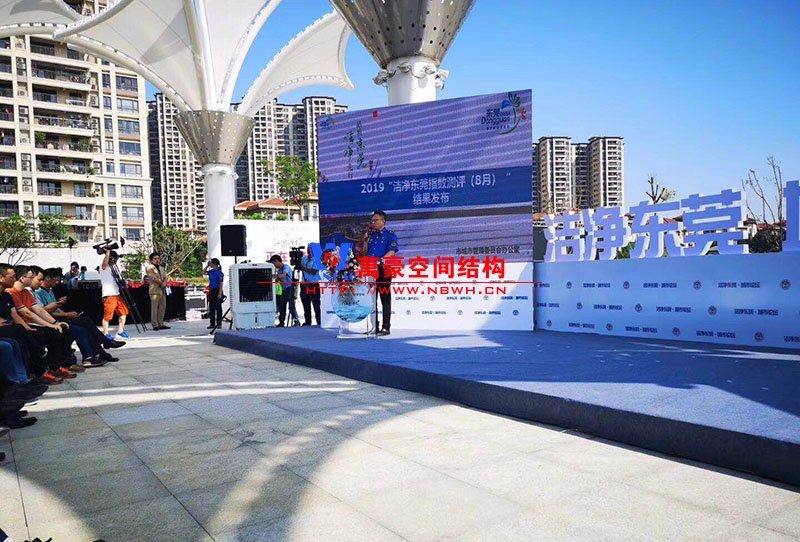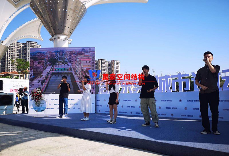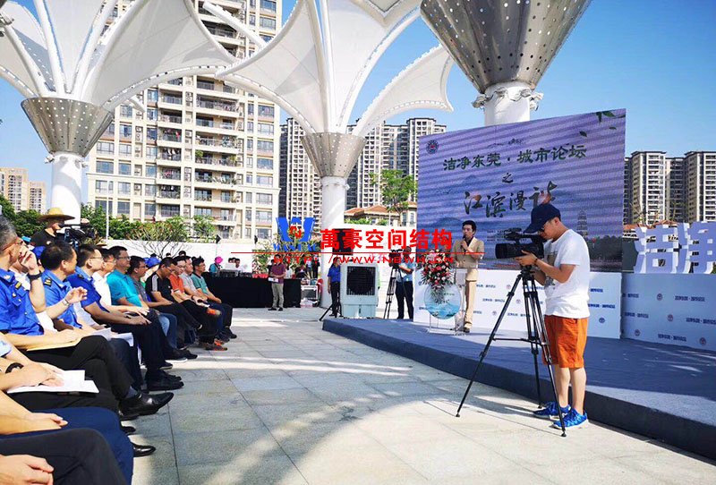 東莞龍舟廣場網(wǎng)格覆膜景觀膜結(jié)構(gòu)竣工半年,本次迎來東莞論壇在景觀膜朦朧照影下召開會議。 膜的效果非常好,看上去整潔漂亮,祝賀我司又添作品。