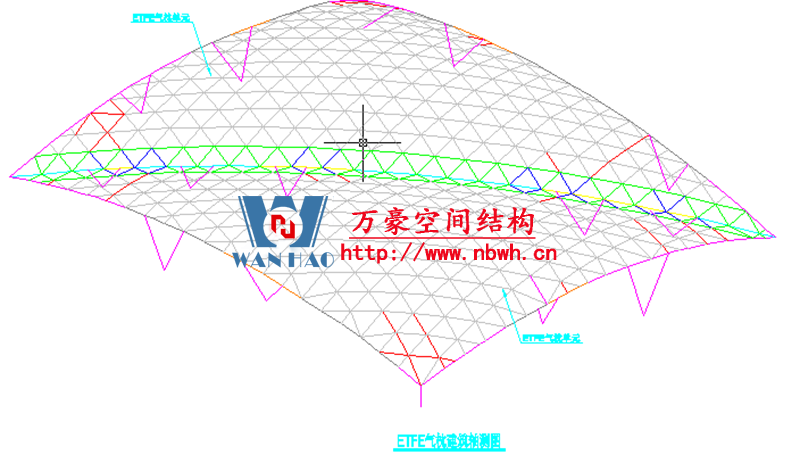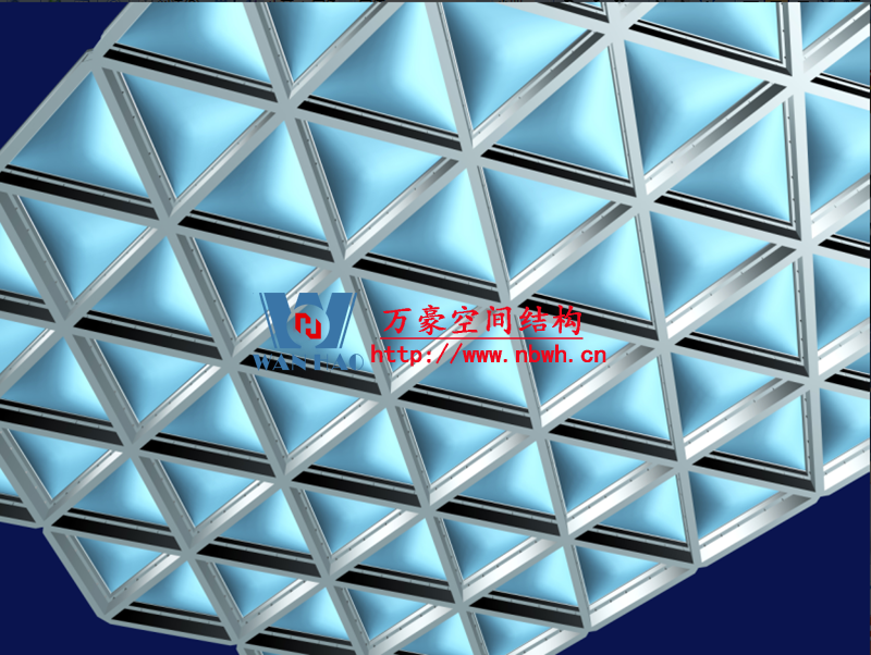膜結(jié)構(gòu)以屋面結(jié)構(gòu)每個三角為一個單元示意圖