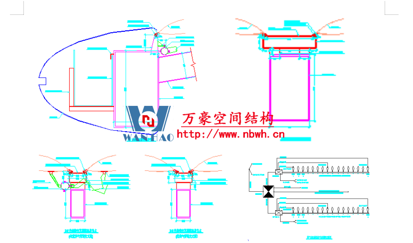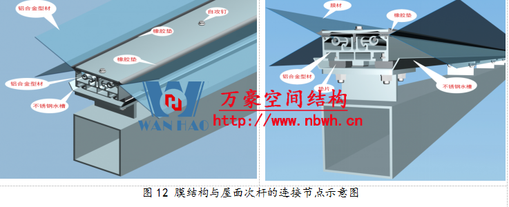 膜結(jié)構(gòu)與屋面次桿的連接節(jié)點示意圖