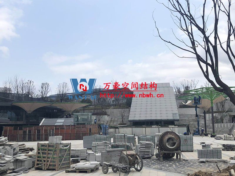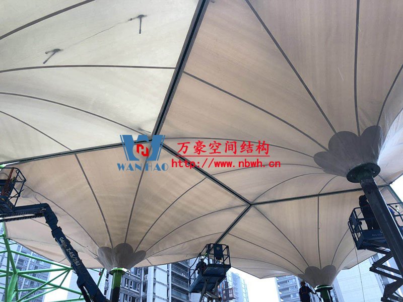 該項目膜材使用進口PTFE膜材,膜結(jié)構(gòu)展開面積5000平米,用鋼量100噸,由寧波萬豪空間結(jié)構(gòu)工程有限公司承建。