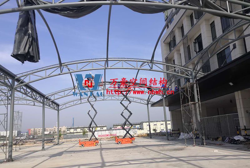 奉化方橋農(nóng)副鋼結(jié)構(gòu)雨棚工程位于浙江省寧波市奉化市內(nèi),此工程用鋼量100噸,膜結(jié)構(gòu)展開面積3500平米,由寧波萬豪空間結(jié)構(gòu)工程有限公司承建。