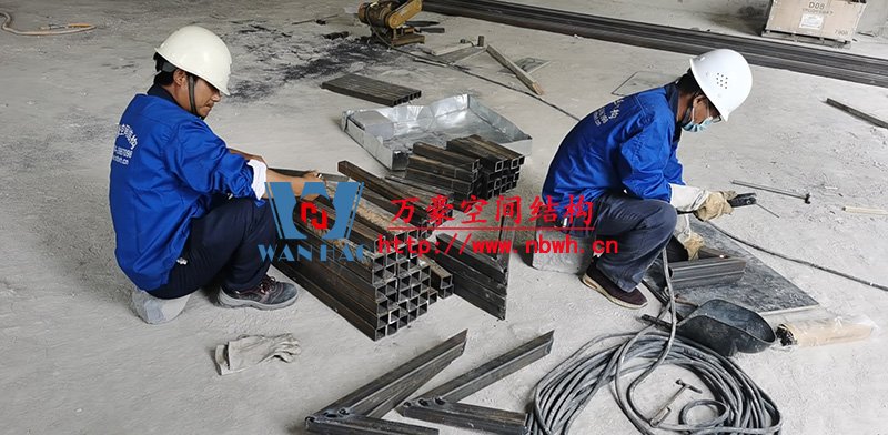 項目區(qū)域劃分為A區(qū),B區(qū),C區(qū),目前C區(qū)正在施工,主要是柱子及桁架吊裝;A區(qū)也在施工,主要是水槽托架及焊縫涂刷底漆;B區(qū)暫停施工。