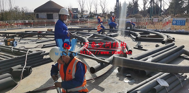 項目造型為貝殼造型,結(jié)構(gòu)復(fù)雜,施工難度非常大,幾乎每一根構(gòu)件都需獨立放樣定位。膜結(jié)構(gòu)則是采用ETFE與PTFE多種膜材組合的方式,更大限度的展現(xiàn)了膜結(jié)構(gòu)在商業(yè)領(lǐng)域的應(yīng)用。