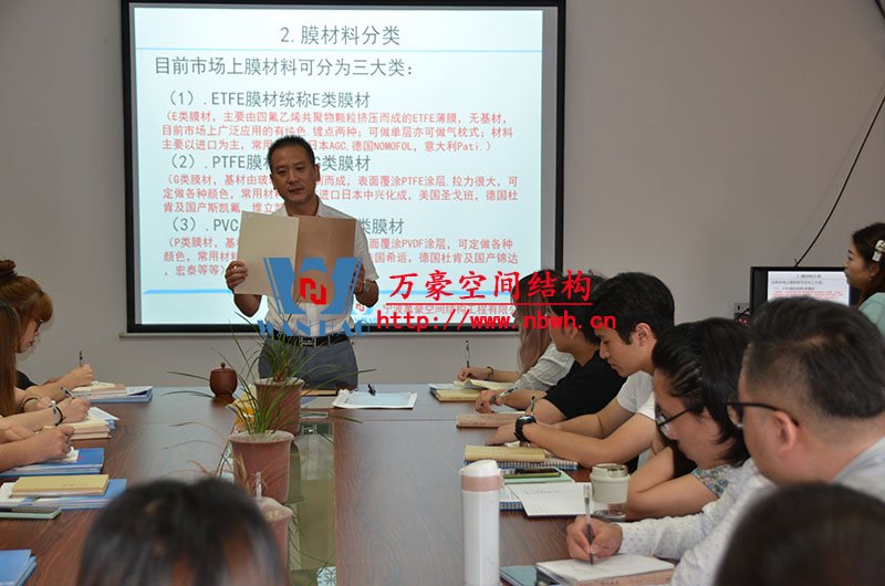 為更好的掌握膜結(jié)構(gòu)技術(shù)知識,更專業(yè)的為客戶服務(wù),2021年6月25日,萬豪空間結(jié)構(gòu)對新進(jìn)員工進(jìn)行了膜結(jié)構(gòu)專業(yè)知識培訓(xùn)。