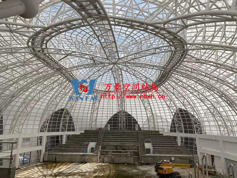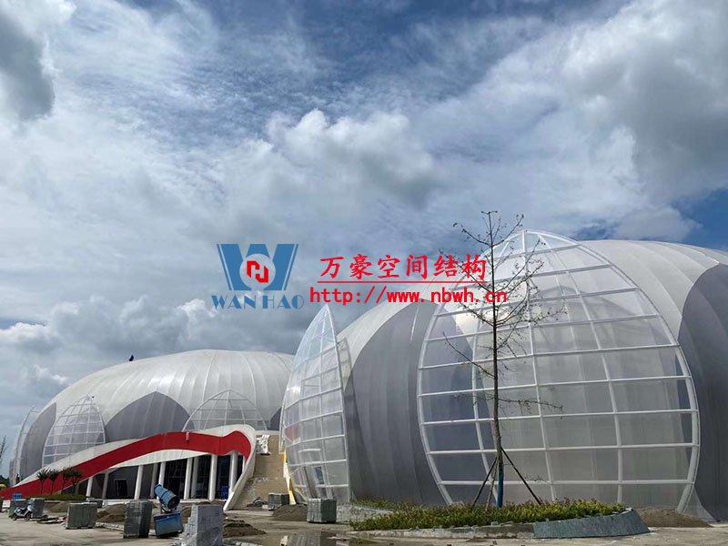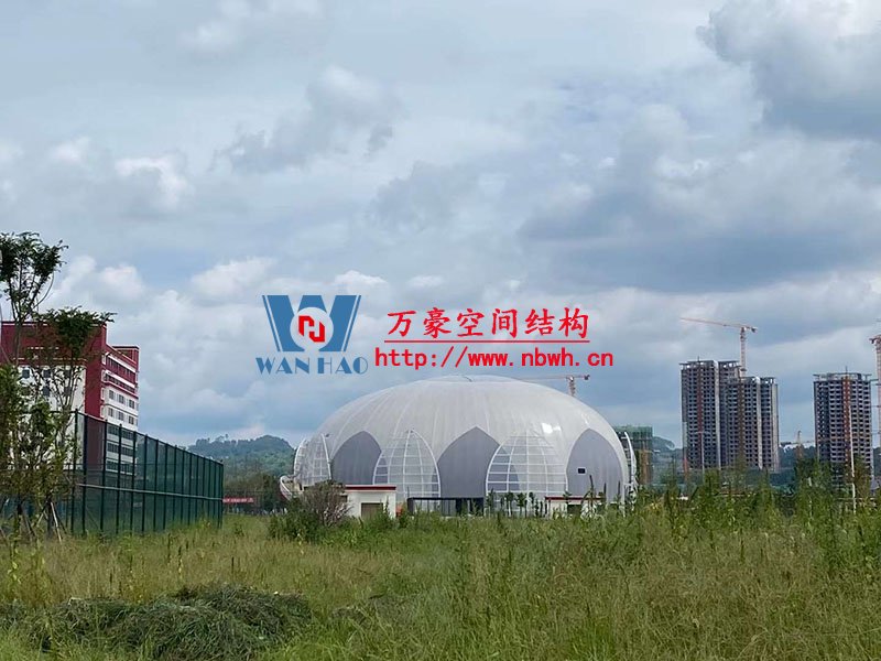 全封閉籃球館和多功能館結(jié)構(gòu)部分采用了部分珩架與單層雙曲面網(wǎng)殼組合,屋面膜選用了不同顏色不同材質(zhì)組合構(gòu)成了含苞待放的花朵,項目落成后將為當?shù)伢w育活動增添活力。