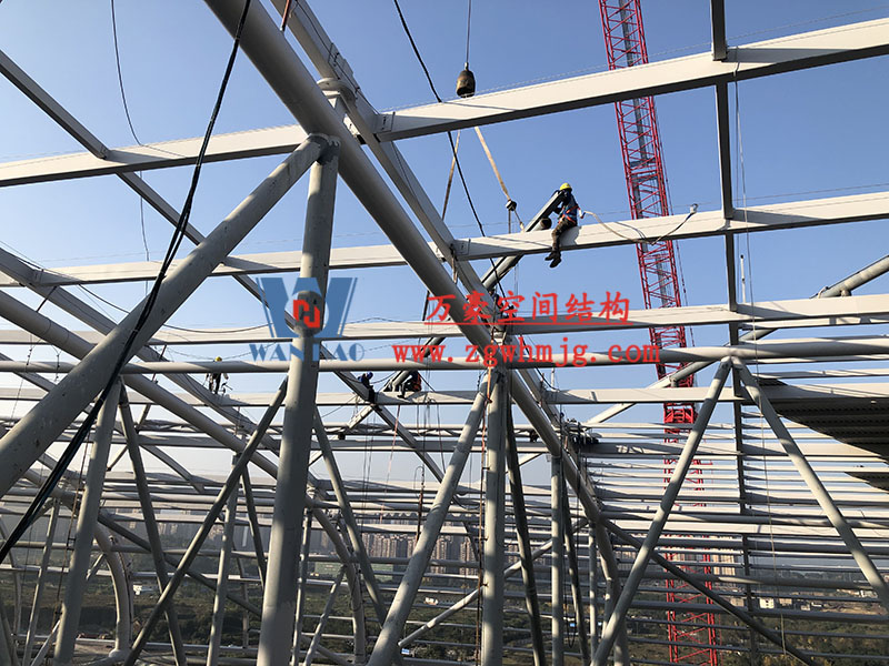 目前,項(xiàng)目內(nèi)環(huán)鋼結(jié)構(gòu)全部完成,屋面鋼結(jié)構(gòu)全部完成,立面鋼結(jié)構(gòu)完成60%,屋面膜結(jié)構(gòu)完成90%,內(nèi)環(huán)膜結(jié)構(gòu)完成25%。