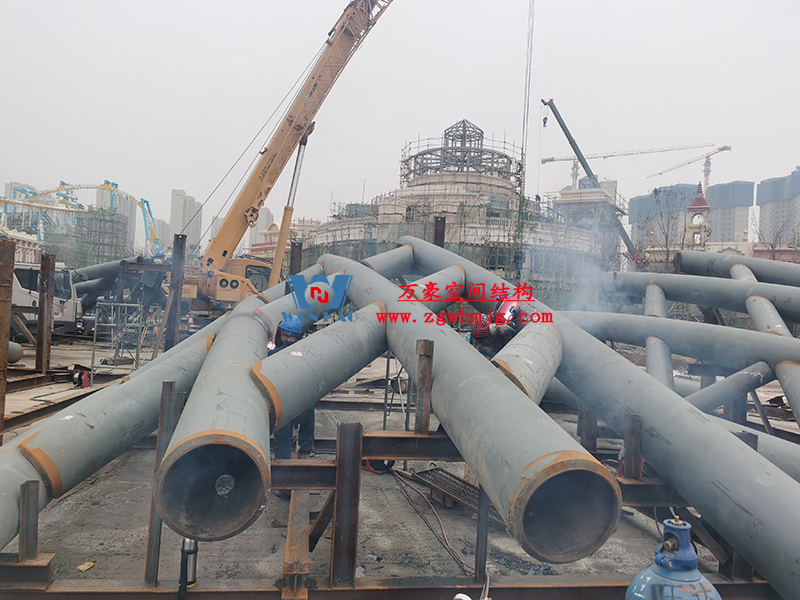 塔身為筒中筒鋼結構,內筒為等間距布置的10根豎柱和水平梁組成,外筒為雙向螺旋交織的菱形網(wǎng)格曲線空間鋼結構,形似廣州小蠻腰,呈現(xiàn)“纖纖細腰,不盈一握”的驚人審美效果,也與中國傳統(tǒng)審美觀相契合。