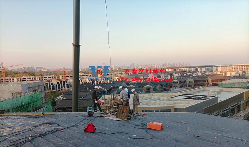文一塘溪津門(mén)天幕鋼結(jié)構(gòu)及ETFE氣枕膜工程地址位于合肥市包河區(qū)杭州路與澳門(mén)路交匯處西北側(cè)。該項(xiàng)目用鋼量900噸,膜結(jié)構(gòu)展開(kāi)面積7000平米。