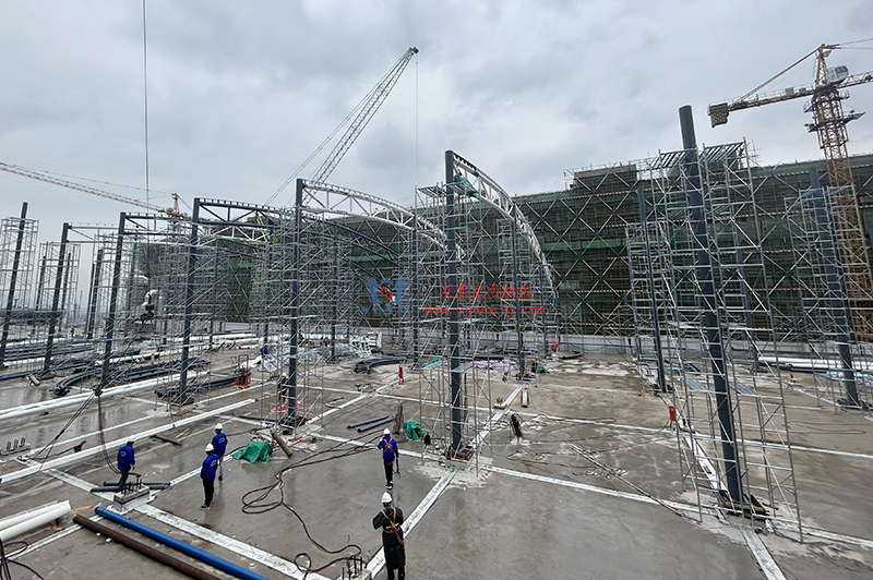 為圓滿完成建設(shè)任務(wù),萬豪統(tǒng)籌安全防控和施工管理,保證施工安全、質(zhì)量的前提下,合理倒排工期,精心組織、晝夜奮戰(zhàn),優(yōu)化施工方案,以實(shí)現(xiàn)節(jié)點(diǎn)工期為目標(biāo),統(tǒng)籌兼顧,切實(shí)保證施工生產(chǎn)穩(wěn)步有序推進(jìn)。工作人員爭分奪秒,掀起了搶工期保竣工的施工高潮,為完成目標(biāo)全力沖刺。在施工人員緊抓時間節(jié)點(diǎn)的前提下,工程主體鋼構(gòu)部分已接近尾聲,膜結(jié)構(gòu)進(jìn)場安裝也已排上日程。