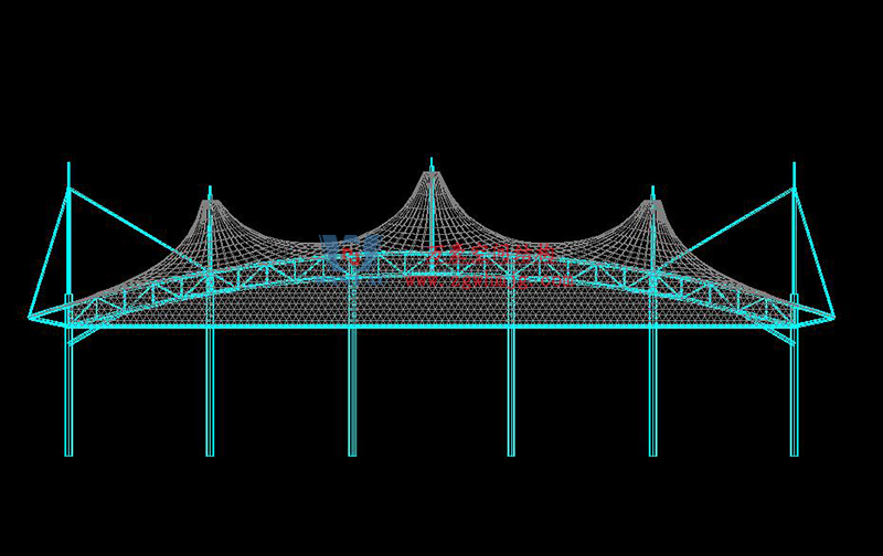球場采用膜結(jié)構(gòu)形式,可以充分發(fā)揮建筑師的想象力,又體現(xiàn)結(jié)構(gòu)構(gòu)件清晰受力之美。作為一種柔性材料,其在建筑上的造型變化多端,是其它材料所不能比擬的,因此也造就了膜結(jié)構(gòu)多變的特性,充分體現(xiàn)出建筑形體塑造力和輕盈、飄逸的動感曲線外觀。