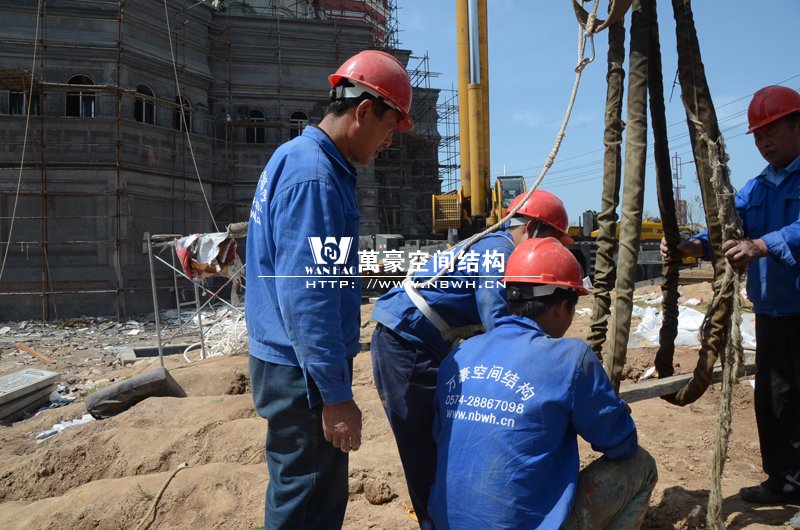 橫店圓明新園俄羅斯館屋頂整體吊裝順利完成,300多噸的大吊車,20多噸重的鋼結(jié)構(gòu)裝飾球,80米高的作業(yè)平臺(tái),在萬(wàn)豪現(xiàn)場(chǎng)管理人員和工人的緊密協(xié)調(diào)下,經(jīng)過(guò)一周的晝夜努力終于大功告成,本次吊裝從4月17日開(kāi)始,前期天氣晴朗無(wú)風(fēng),是吊裝的好天氣,吊裝也是順利進(jìn)行,之后的幾天陰雨不斷,大家為了吊裝盡快順利完成,在雨小的時(shí)候冒雨進(jìn)行吊裝,終于在4月22日吊裝正式完成。