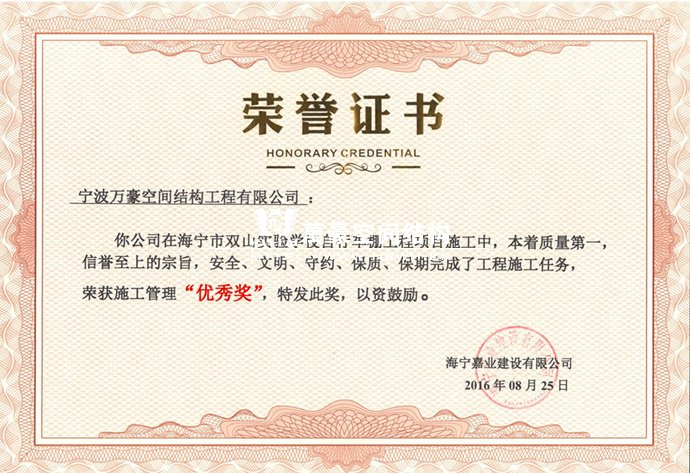 海寧實(shí)驗(yàn)學(xué)校車棚項(xiàng)目榮獲“優(yōu)秀獎(jiǎng)”