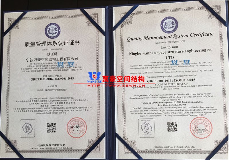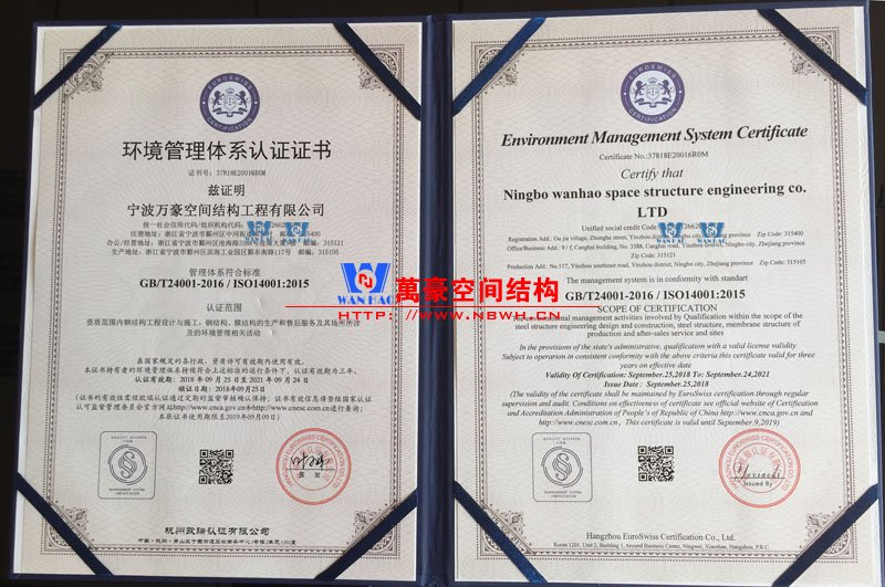 最近,寧波萬豪空間結(jié)構(gòu)工程有限公司進(jìn)行了最新一次的質(zhì)量管理體系認(rèn)證審核,各項(xiàng)指標(biāo)自然是符合要求,順利的拿到了4項(xiàng)管理體系認(rèn)證證書,大家可以見證一下。