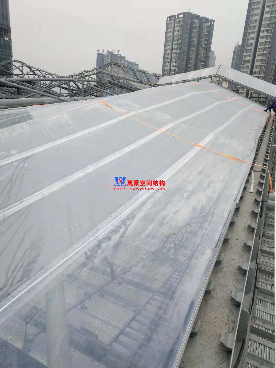 經(jīng)過(guò)不斷的日夜加班,遵義高鐵新城天幕膜結(jié)構(gòu)工程目前進(jìn)入到膜材安裝階段。