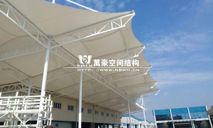 嘉善索菲亞家居(浙江)有限公司膜結(jié)構(gòu)工程就位于嘉善縣的嘉善經(jīng)濟(jì)開發(fā)區(qū)隆全路上。整個項目總用鋼量達(dá)到了約120噸,膜布投影面積3000㎡。